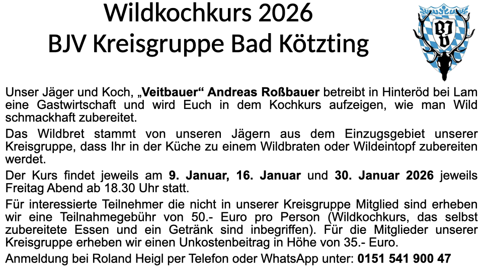 Bereits am 16. Juni 1881 wurde die Gründung der Kötztinger Ortsgruppe mit 58 Mitgliedern im “Deutschen Jäger” erwähnt. Am 29. Mai 1948 erfolgte die Wiedergründung als “Kreisgruppe Kötzting” im Landesjagdverband Bayern.