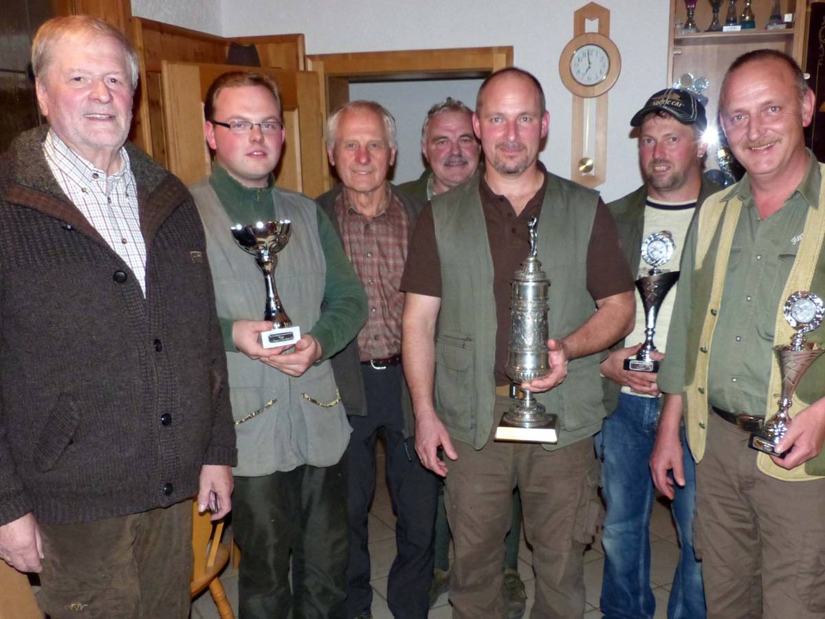Als beste Einzelschützen erhielten Hubert Pritzl und Karl-Heinz Weindl von der BJV-Kreisgruppe Bad Kötzting (jeweils 144 Ringe) sowie der Drittplatzierte Stefan Himmelstoß, Jagdschutzverein Roding (143 Ringe) jeweils einen Pokal. 4. Andreas Kuchenreuter, Jägerkameradschaft Cham (143), 5. Engelbert Niebauer, Jägerkameradschaft Cham (143), 6. Alexander Kermer, BJV-Kreisgruppe Bad Kötzting (141), 7. Robert Böttcher, BJV-Kreisgruppe Furth im Wald (140), 8. Christian Stockinger, BJV-Kreisgruppe Waldmünchen (140), 9. Christian Meimer, Bad Kötzting (139) und 10. Harald Böttcher, Jägerkameradschaft Cham (138 Ringe).