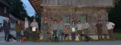 Die erfolgreich absolvierte Prüfung wurde in der Forstdiensthütte ausgiebig gefeiert. Suchensieger wurde Thomas Fischer, Bachmeierholz, mit Drahthaarhündin „Isy vom Lohgraben“, die einen 1. Preis mit der Maximal-Punktzahl 80 holte. Jeweils einen 1. Preis erreichten auch Ludwig Heigl aus Heitzelsberg mit der Alpenländischen Dachsbracke „Junk vom Hirschkopf“ (74 Punkte), Kathrin Mühlbauer aus Thenried mit dem Foxterrier „Dexter vom Hohenbogen“ (72 Punkte) und Willi Hasl aus Oberfaustern mit der Alpenländischen Dachsbracke „Wasti vom Omesberg“, die mit 72 Punkten die Dressurprüfung für Bracken absolvierte.