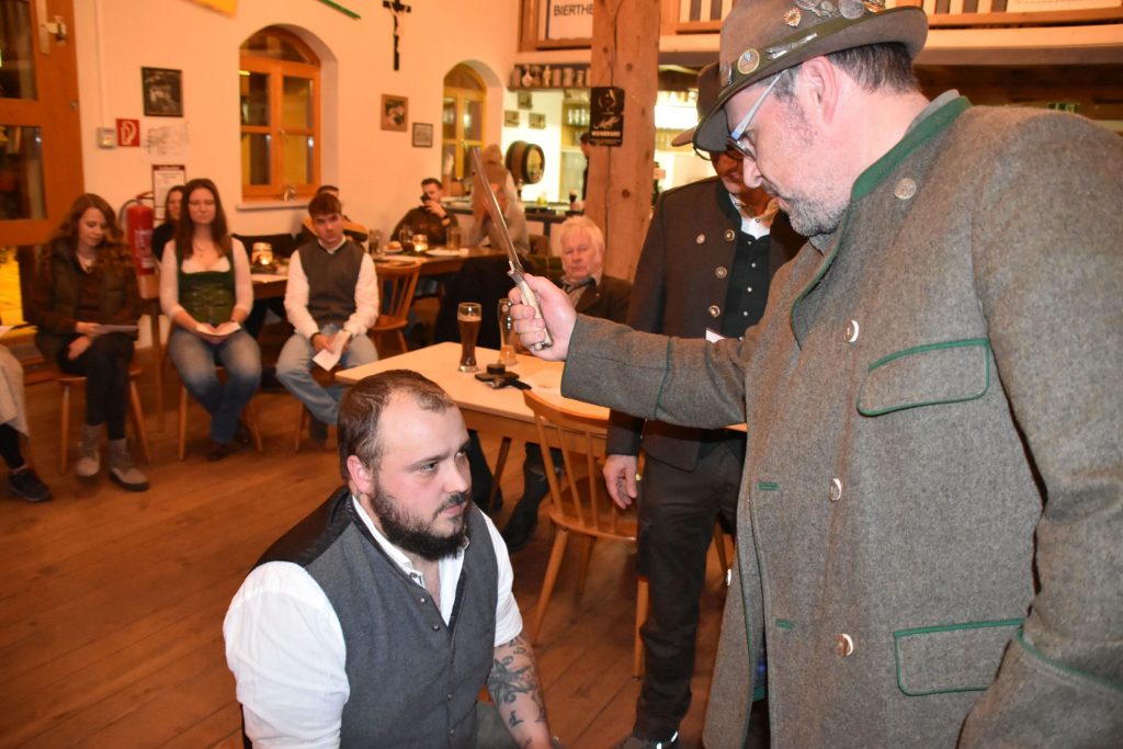 Bad Kötzting/Altrandsberg. Nach erfolgreicher Prüfung werden seit Samstagabend neun junge Jagdschein-Inhaberinnen und -Inhaber der BJV-Kreisgruppe Bad Kötzting von den Kollegen des Waidwerks erstmals und offiziell nicht mehr mit „Horrido“, sondern mit „Waidmannsheil“ begrüßt! Im Rahmen der Hubertusfeier in der Schlossgaststätte Laumer in Altrandsberg wurden die Jungjäger mit dem Jägerschlag in die Reihen der „Alten Jägerschaft“ aufgenommen.